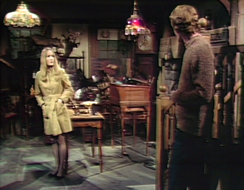 Carolyn has an urgent conversation with Barnabas about whether Freeze, Mike and Dr. Blake killed Marjorie, and then she has another one with Jim on the same subject, and Jim kisses her, but she decides that she wants Barnabas more.