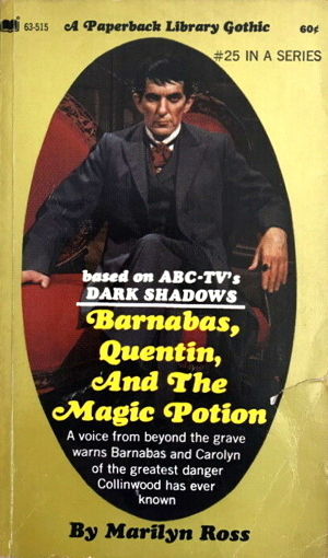 This brings us to the latest Dark Shadows novel that Paperback Library has produced for public consumption: the antiques-filled Barnabas, Quentin and the Magic Potion, written by Dan “Marilyn” Ross and published in January 1971.