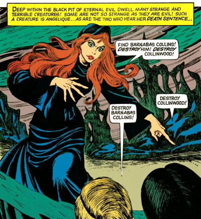 And can we infer that Angelique in this comic book reality is an entirely supernatural being? She only seems to appear as a ghost at Collinwood, or on some other plane like the Underworld.