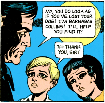 So it’s a good thing that Gold Key is still publishing the Dark Shadows comic book, a welcome voice of insanity in these untroubled times. Today, we’re going to look at “The Night Children” from issue #15, published in August 1972, in which the witch Angelique wreaks her wretched revenge on Barnabas Collins by sending him just what he thought he’d never lay eyes on again: children.