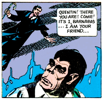 Fortunately, the thing happens that was the specific thing that Barnabas said he couldn’t let happen: the moon goes down, and Quentin turns back into a human.