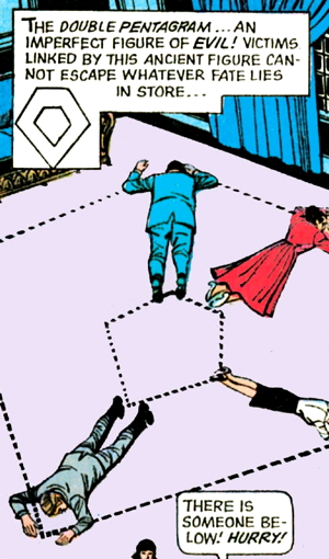 “The double pentagram… an imperfect figure of evil!” says the narration, drawing a helpful diagram to explain the concept.