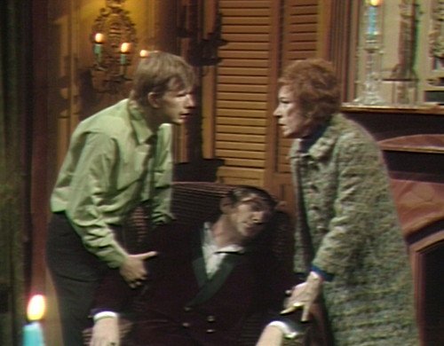 And then there’s the blooper that Sam makes about Maggie’s trip to Windcliff: “Maggie Evans, who left Collinwood with Phillip, returned a year later, a divorced woman.” There’s two things going on here — first, it was Sebastian Shaw who took Maggie to the sanitarium, and more importantly, they weren’t getting married. I think that Sam is conflating the fictional event (Maggie going to Windcliff) with the actual real-world event (Kathryn Leigh Scott leaving the show to marry her fiancee).