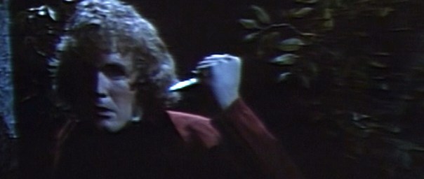 But then he takes a look at himself, out in the woods, attempting murder for the fourth time today. In a moment of clarity, he looks at the knife, and asks, “What am I doing?” It’s the portrait of a man suddenly going stark raving sane.