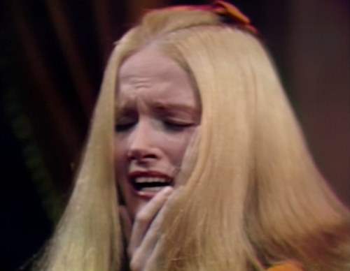 And she’s gone, having livened things up considerably, and brought some real emotion into this shaggy dog story, just at the moment when it seemed like it was heading for a whimper. Once again, Nancy Barrett comes very close to making all of this worthwhile. And then there’s Carrie Stokes.