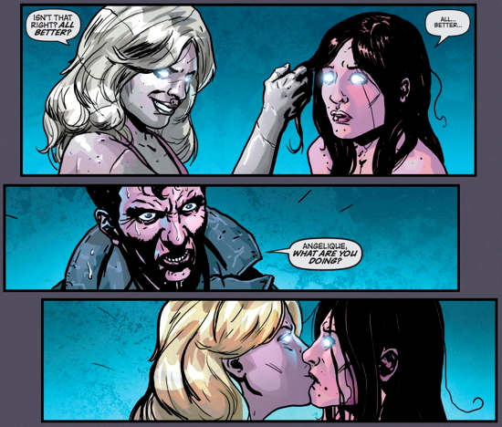 Oh, and Angelique sucks all the warmth out of Carolyn’s boyfriend and leaves him cold and dead on the ground, and that is the unsurprising twist at the end of issue #3.