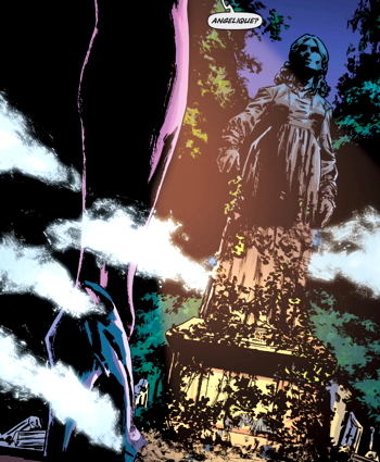 First, there’s a statue, I guess? And it’s of Angelique. It seems like it’s somewhere on the Old House grounds, but nobody’s noticed it before, which is weird because it’s all overgrown with ivy and it’s obviously been there for a long time, and I know that people at the great estate have a lot on their minds but you’d think somebody would have spotted this before now.