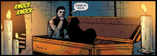 I mean, I get why a writer would go back to this particular well, especially in a story set in post-1971. This comic already has three of the four major kaiju — Barnabas, Julia and Quentin — and it makes sense that Manning wants to get a complete set. Still, he’s repeating a plot point that’s already been pretty thoroughly explored.