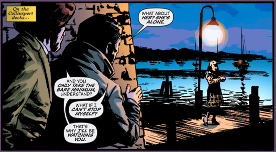 It’s issue #3 and we still haven’t killed any women, so Barnabas is struck with another craving, and he claims that he can’t fight Angelique unless he gets some nutrition of the female variety. Quentin accompanies him down to the docks for take-out, and tries to put some guardrails on the serial rapist.