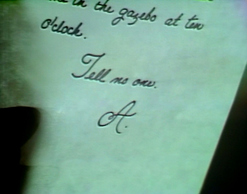 After Quentin reads the letter, he says, “It’s signed A! What could A? What could it be?” Morgan replies, “I don’t know, but maybe this may be her.”