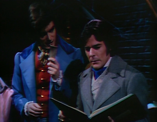 So that little mystery just kind of settled onto the floor and sat there, refusing all nourishment, until yesterday’s episode when junior mentalist Carrie Stokes came by with a letter that she found in an old, dusty book in the basement of the haunted cottage where she lives. The letter was addressed to James Forsythe, so Carrie decided to bring it to Collinwood immediately, because she is made of incremental plot points.