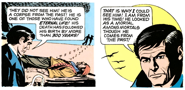 The only real analogues to the “Barnabas adventure” story on the show were his trips to 1897, Parallel Time and 1840, which were treated like exotic locations even though they were located in exactly the same house. That idea was picked up in the comics, which sent Barnabas hurtling into the past and the future of Collinwood, but they also used more exotic locales, as we’ll see today.