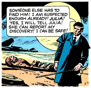By the way, this might not be the most opportune moment, but does anyone know why Barnabas Collins carries a cane around with him all the time, especially in the spinoff media? I mean, he doesn’t use it to walk, and yes, it repels werewolves and you can hit Willie Loomis with it, but what if there are no werewolves around? I suppose it’s possible that this story could potentially introduce sea-werewolves in the coming pages, because it’s Gold Key and it can only get weirder from here, but still, it seems like Barnabas is always carrying a weapon around with him and nobody ever calls him out on it.
