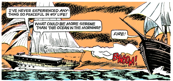 So how much fun is this sea battle, is the pertinent question at this point, and I think you’ll agree that so far this is potentially the best story about the ocean that anyone has ever written. I’m not big on sea stories but I feel pretty confident about that.