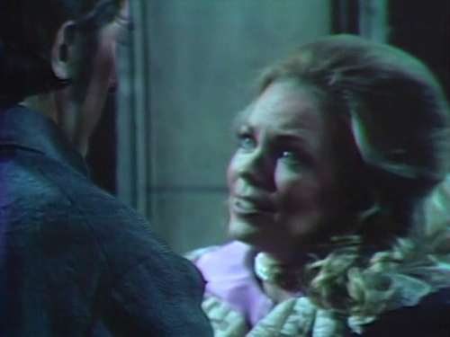 14. I enjoyed watching Kate Jackson in this episode. It begins with her watching the scene we’ve been watching, and proceeds to show her reacting to it as we might imagine ourselves reacting in her position. Combine that, on the one hand, with all the times in previous episodes when she’s asked questions we’ve wanted to ask and made statements we’ve wanted to make; combine it, on the other hand, with the fact that PT Daphne is more continuous with Regular Time Daphne than any of the other characters is with a Regular Time counterpart, and we have established her as the audience identification character.