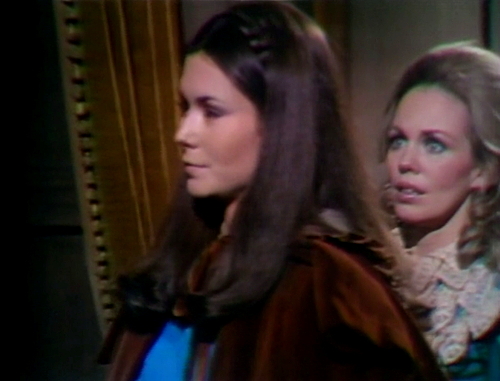 There’s a melancholy aspect to the scene where Daphne and Catherine are talking near the piano. Kate Jackson and Lara Parker excel in their respective acting styles, but Lara Parker’s is so specific to DARK SHADOWS that you can see why any producers and casting directors who might have seen her work o the show wouldn’t have thought of casting her in anything else. I suppose they probably also saw SAVE THE TIGER, where she proves she can do other styles, but she was only on screen for a few minutes in that one, and for about half that time her character is imitating Angelique. Kate Jackson, meanwhile, proves that a quasi-naturalistic style exportable to other TV shows can also work on DARK SHADOWS.