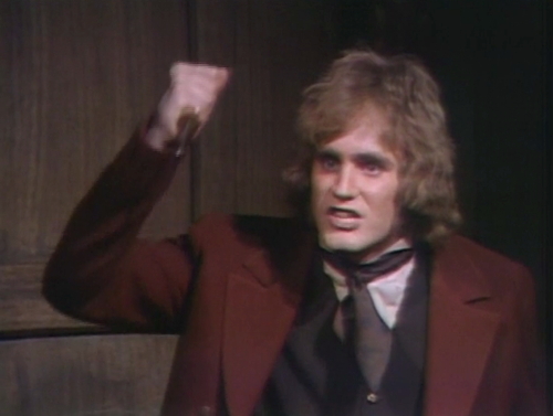For my part, I consider Gordon Russell’s thinly-veiled autobiography in this episode to be a refreshing turn. He spent last week’s episodes looking for bits of the show that it was possible to like and systematically ruining them for us. Morgan and Flora had a couple of scenes together that were fun to watch? We’ll have Morgan and Flora play a mind-bruisingly stupid scene. Kate Jackson is charismatic and Daphne is an intelligent character? We’ll show her ordering people to stop caring about her, and then we’ll have her play a death scene after which we announce that she isn’t dead yet. Bramwell and Catherine are so far over the top in their narcissism that you can either work up hate for them or find unintentional humor in their dialogue? We’ll have endless scenes where they mope around, wallowing in guilt and being helpless.
