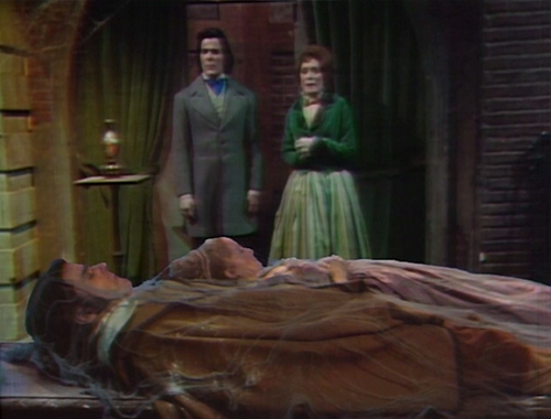 True, and I know I’ve seen this sequence twice but the first was on video and the second was streaming, and “binge watching” simply did not leave time for too much pondering — I just plunged ahead with the next episode which still has the familiar equation of atmosphere + music + actors + sets + etc. = the one-and-only Dark Shadows, even when the sum is lower than usual.