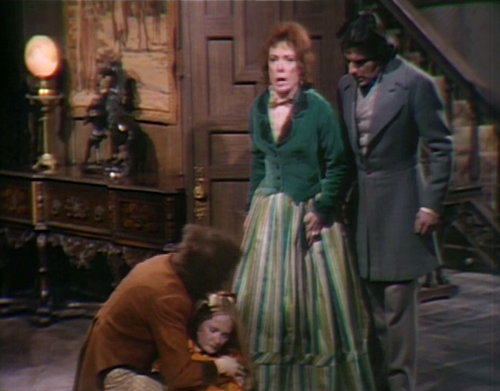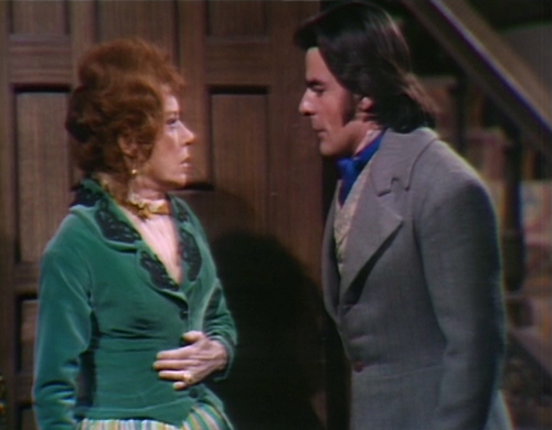 Morgan and Julia stop by, wondering what all the racket is, and Kendrick says, “It’s not serious, he only wounded her in the shoulder.” Julia gasps “Gabriel!” with one of those big Dark Shadows reactions that they have to do because they’re supposed to be surprised by something that shouldn’t surprise them. I’ll miss those reactions, when this is all over; nobody else knows how to do it properly.