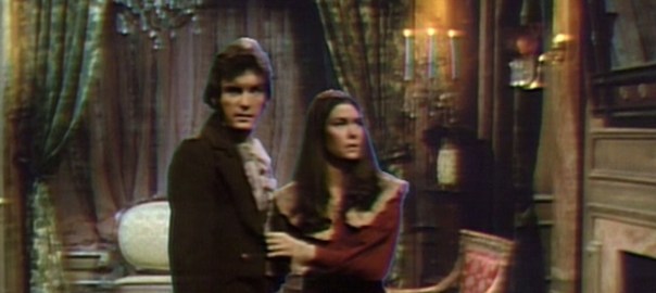 So, for starters, it’s not a dream. I know what a dream sequence looks like on Dark Shadows, and that isn’t what this is. Carolyn’s eyes are open, and she’s sitting on the couch. This is some kind of wide-awake Chromakey phenomenon that they apparently have in this parallel band of concurrent time when they want somebody to think about something, but they don’t have time to put her to bed.