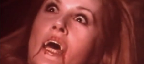 In the film, Jonathan Frid plays a vampire, Kathryn Leigh Scott plays a girl, and Nancy Barrett plays a girl vampire, so she wins. You see a lot of Carolyn-the-vampire images in the promotional materials, because that’s the traditional early-70s horror movie draw — a pretty girl in a flimsy nightgown, with blood all over her face. This was the period after they invented red paint and before they invented slasher movies, so sometimes the girls had to go and get bloody some other way.